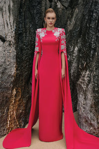 Symmetric Floral Embellished Cape Sleeves Dress - XS / Pink