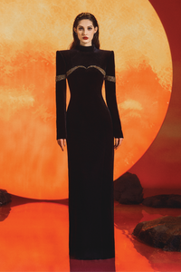 This dress exudes a sense of poise and grace, making it ideal for a variety of occasions, from formal events and cocktail parties to upscale gatherings. The clean lines and understated glamour of the High Neck Long Sleeve Dress make it a versatile and classic choice for those who appreciate timeless fashion with a modern twist. The dress is the epitome of timeless elegance and sophistication. This dress combines the allure of a high neckline with the gracefulness of long sleeves, creating a look that is both modest and captivating.