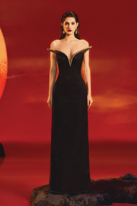 Unveil the allure of our off-shoulder dress, a chic and graceful ensemble that effortlessly combines modern style with sophistication. The off-shoulder design beautifully frames your collarbone, while the V-neckline adds a touch of glamour. The dress boasts a flattering silhouette that drapes elegantly, making it a versatile choice for various occasions, from cocktail parties to formal events. Make a statement with this exquisite piece that is sure to turn heads and leave a lasting impression.